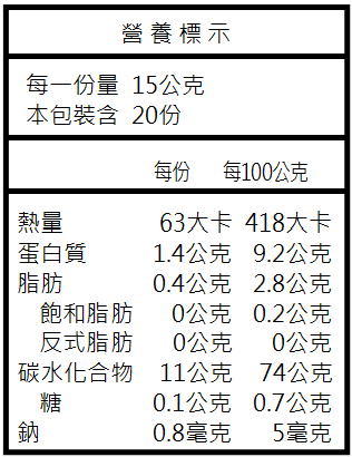 保存條件:請置於陰涼乾燥處,避免高溫、潮濕或陽光直射。開封後請儘速食用完畢,以保食品新鮮
